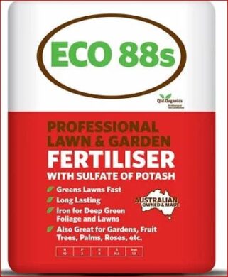 Originally formulated specifically for turf, Eco88s is now also used as a general purpose fertiliser. The added iron has been found to achieve vibrant colour in flowers (particularly rose and hibiscus flowers) and spectacularly deep green foliage (especially on palms)