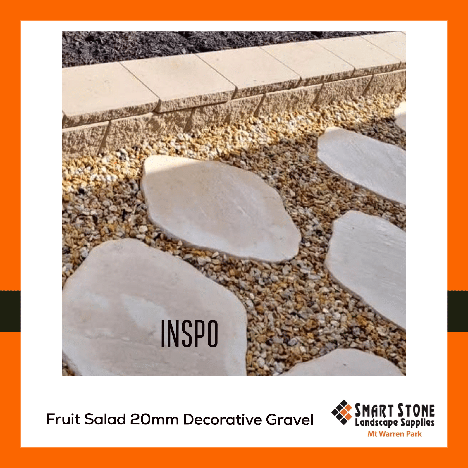 We don’t call it fruit salad for the taste! This 20mm decorative gravel is a great looking mix of colours and can be used for any landscaping project where you need some colour and variety.